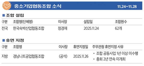 조합안내 설립·운영 지원사업 홍보관 알림마당 중소기업중앙회 노란우산 공제기금 중소기업 보증공제 파란우산 손해공제 PL단체보험 조합안내 중소기업협동조합 소개 소개 지원근거 기능 협동조합 검색 협동조합 통계 지원제도 소개 혜택안내 컨설팅 및 활성화 지원 설립·운영 설립안내 설립절차 설립컨설팅 안내 운영안내 운영컨설팅 안내 총회 이사회 임원관리 임원선거 정관규약·규정 제·개정 조합원관리 사업계획 및 수지예산 작성 회계 및 결산 세무 중앙회 회원가입 안내 산업·특별위원회 운영목적 및 기대효과 위원회 현황 지원사업 정부지원시책 23년 중소벤처기업 지원사업 책자 중소기업 지원사업 활용 중소기업 사업조정제도 조합 기능활성화 지원 지방자치단체 조례 임직원 교육 조합 활성화센터 입주 조합 공동사업 지원 공동사업SOS지원단 공동구매 전용보증 판로지원 공공구매제도 참여 글로벌화 지원 기술개발지원 단체표준 제정 컨설팅 스마트공장 구축 지원 홍보관 협동조합 제품·서비스 공동사업 따라잡기 우수사례집 보기 중소기업협동조합 뉴스 알림마당 공지사항 자료실 운영자료 법령자료 동영상 자료실 온라인 고객상담 자주묻는질문 온라인상담 닫기
