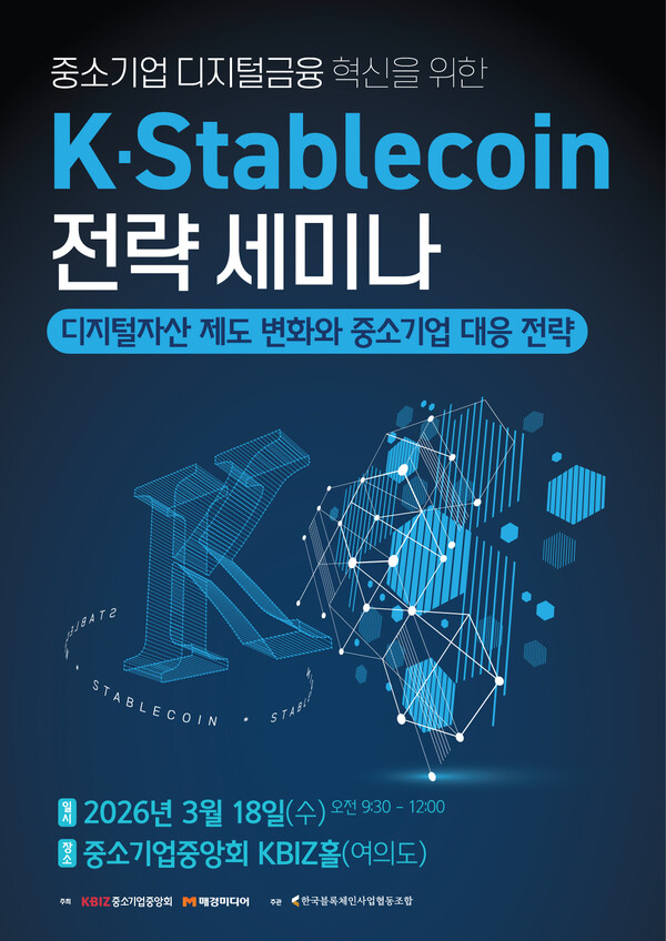 한국블록체인사업협동조합은 오는 3월 18일 서울 여의도 중소기업중앙회 KBIZ홀에서 ‘중소기업 디지털금융 혁신을 위한 K-스테이블코인 전략 세미나’를 개최한다고 밝혔다.