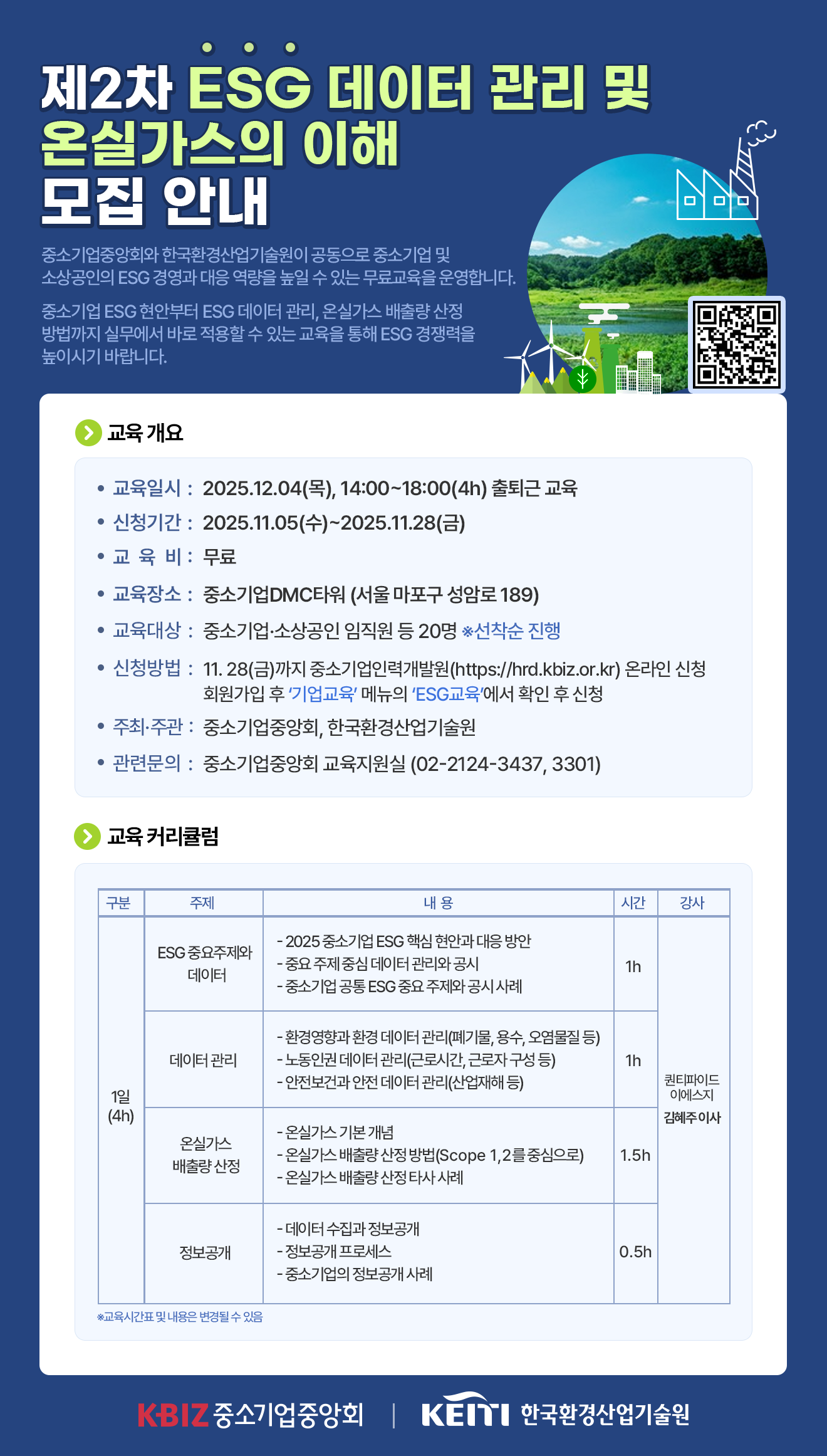 [교육지원실] 12월 중소기업 ESG 무료 교육(ESG 데이터관리 및 온실가스의 이해) 모집 안내